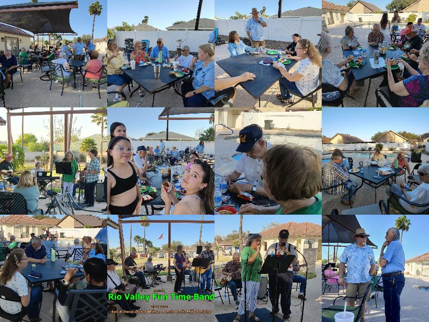 A crowd of over 50 residents and family attended the 2026 Spring Fling event on March 14th. Great food and fellowship was had by all! Live music was provided by the Rio Valley Fun Time Band, featuring country and western music in both English and Spanish. The band invited anyone to come to the microphone and sing. First time singer Norma Alvarez joined Mike on stage and together they delighted the crowd by singing "Red River Valley" in both English and Spanish.